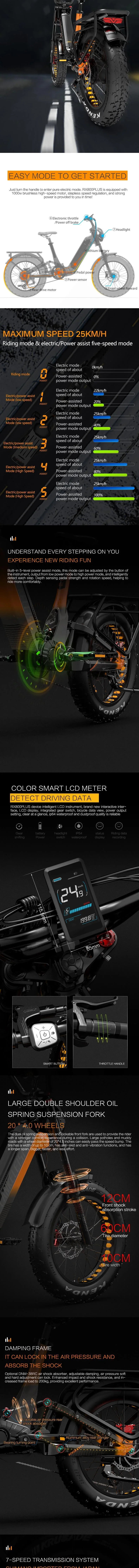 Home / E-BIKE / Lankeleisi RX800 Plus 1000W 20" Fatbike Full Suspension Electric Bike 48V 20Ah Samsung Battery SUV E-Bike