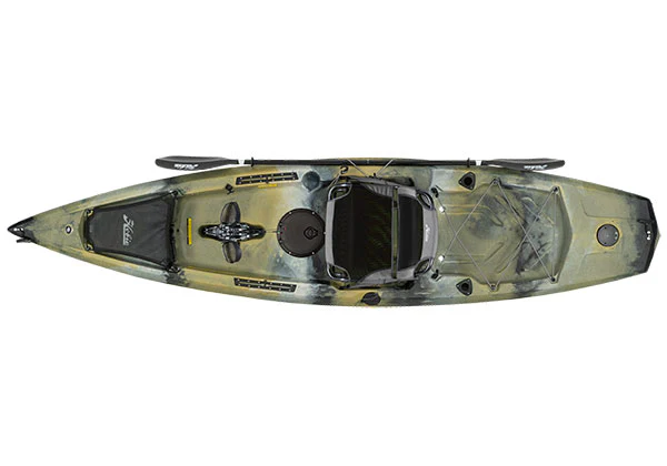 Kayak fishing features include pre-installed rod holders. H-Track accessory mounts. and a transducer cavity ready for you to install a Lowrance® fishfinder. For a stealthy look. upgrade to the Compass Camo package that is outfitted with Kick-Up Turbo Fins and comes in Camo color.