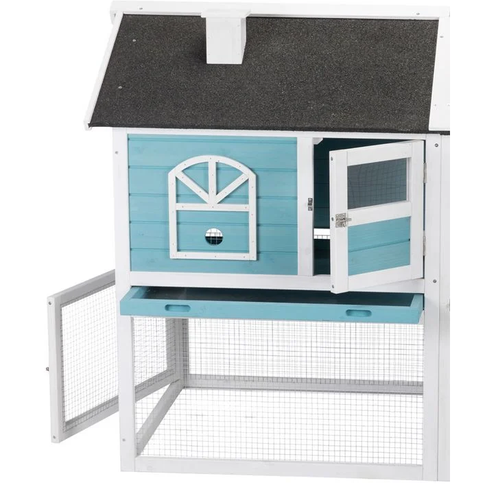 Der Kaninchenstall mit Freilaufgehege ist eine Bereicherung für Ihren Garten. In freundlichem Weiß und frischem Blau erinnert es an ein nordisches Ferienhaus. Das Dach schmückt sogar ein kleiner Kamin! Der hochwertige Stall wurde aus lasiertem Kiefernholz angefertigt und das Dach mit Dachpappe überzogen – er ist also wetterfest und eignet sich ideal zur Außenhaltung Ihrer kleinen Freunde.