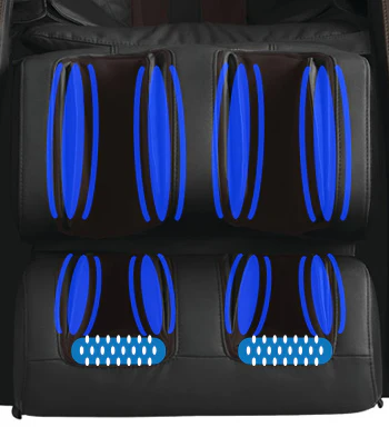 Each leg unit contains two rollers to soothe sore. tired calf muscles. The rollers imitate human hands gently working to relieve tension and pain and restore circulation and flexibility. The calf airbags simultaneously use an oscillating motion for added relief.