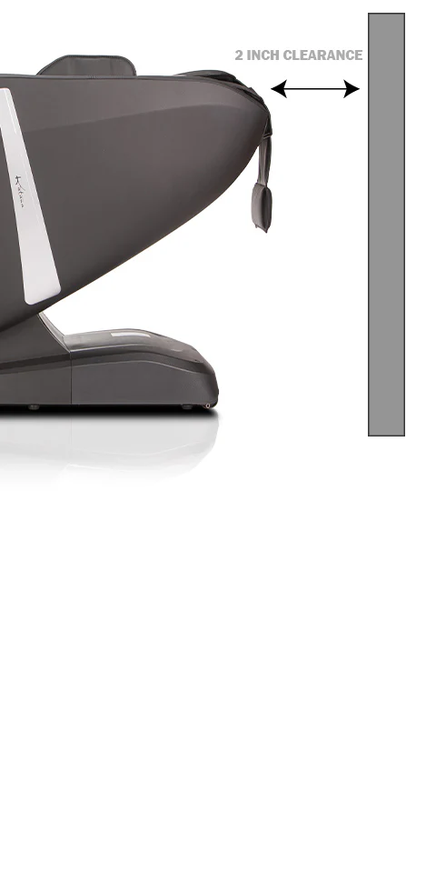 Compact. space-saving design requires just 2″ (5cm) inches behind the chair's backrest. As the chair begins to recline. the chair body shifts forward as the backrest eases you back into a standard recline or into the zero gravity position.