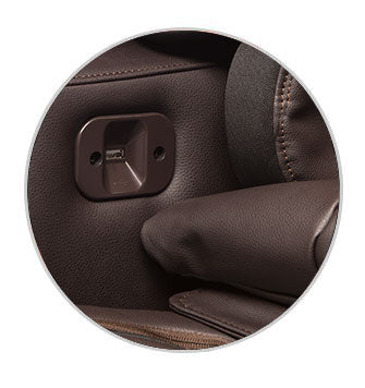 A USB port. located on the inside of the right armrest. allows you to conveniently charge your smartphone. tablet. or another device.